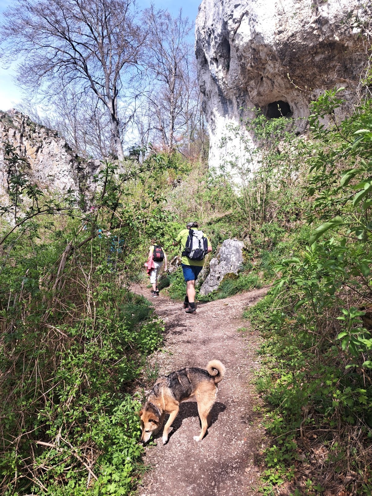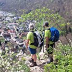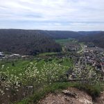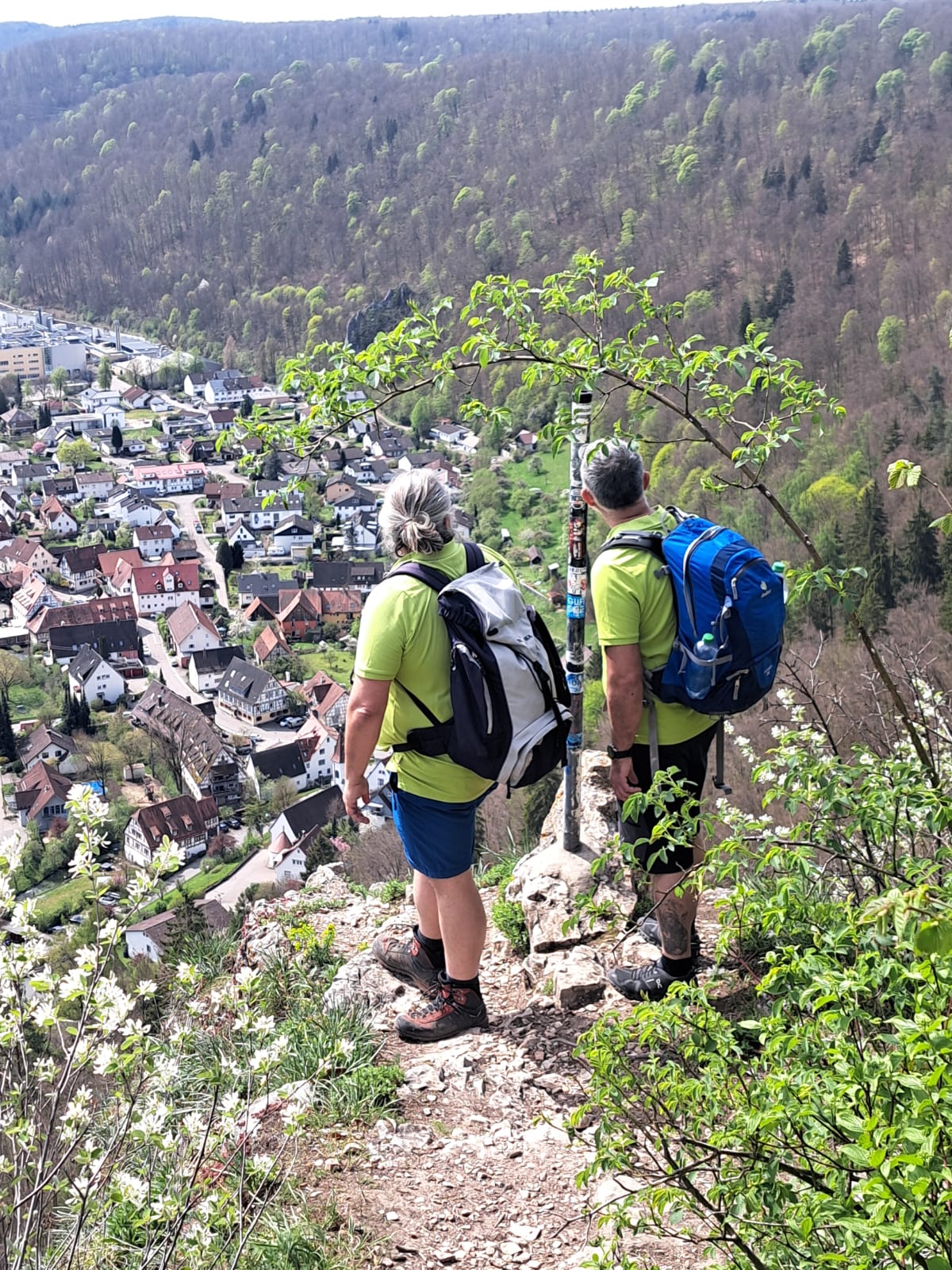 Der Einstieg zu den ersten Felsformationen begann mit vielen Treppenstufen. Weiter ging es dann auf schattigen Waldwegen hinauf zur Brillenhöhle und weiter zur küssenden Sau einer Felsformation. Das nächste Ziel war die Ruine Günzelsburg mit einer sehr schönen Aussicht auf den Ort Weiler. Nach einer kurzen Pause folgte nun der erste steile Abstieg zum Blautopf. Rund um den Blautopf hielten wir unsere Mittagsrast, bevor es wieder steil hinauf zum Blaufels und Glasfels ging. Am Trauf entlang ging es vorbei am Landeplatz Sonderbuch zur Ruine Rusenschloss. Von dort aus hatte man nochmals eine tolle Aussicht auf Blaubeuren, bevor man sich wieder auf den Weg zum Auto machte.