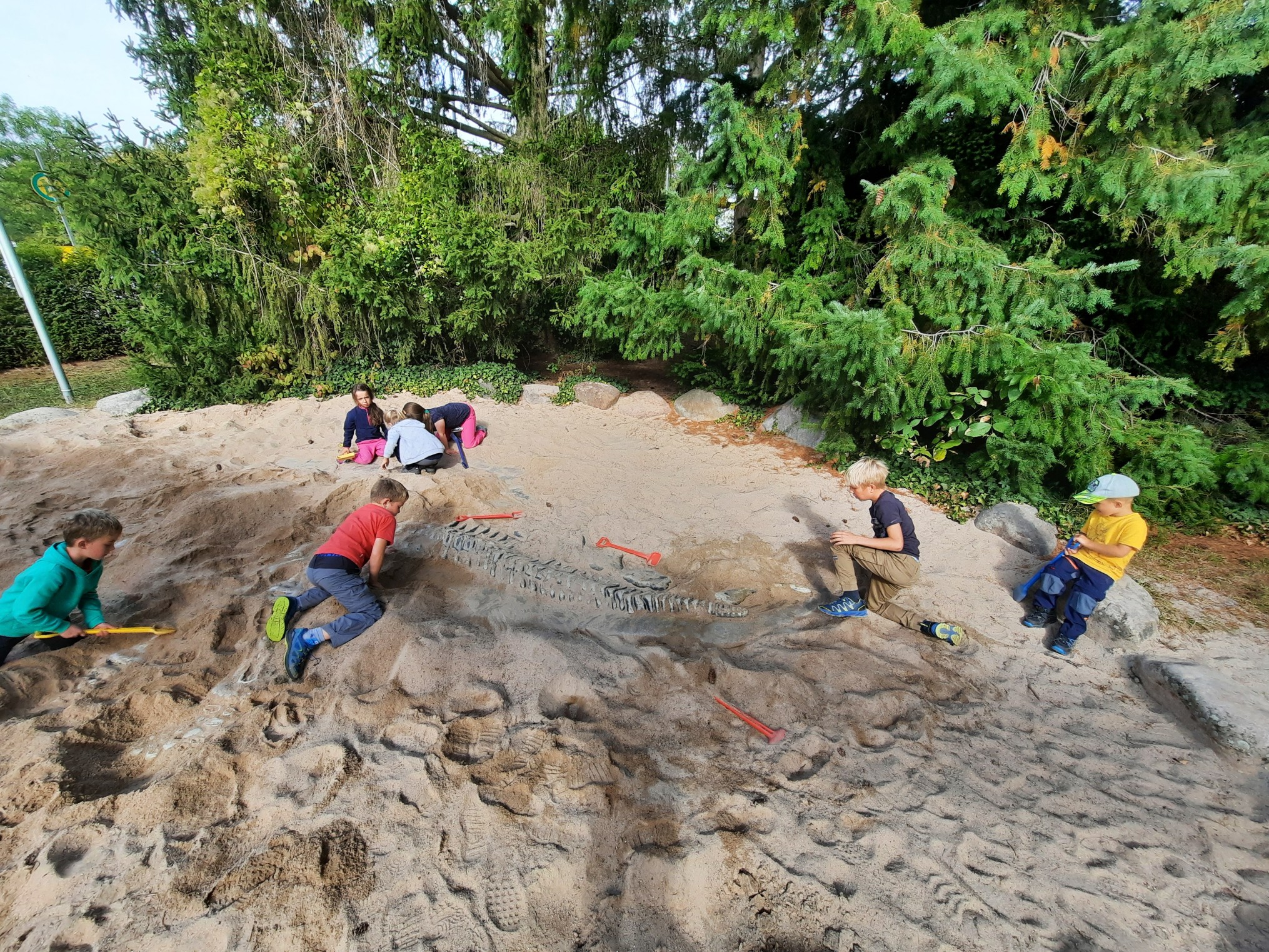 Anschließend ging es noch zum Urwelt-Museum nach Holzmaden. Dort bekamen Jung und Alt spannende Einblicke in die Unterwasserwelt des Jurameers. Im Außenbereich des Museums erwartete uns noch eine Attraktion: lebensgroße Dinosaurier und ein großer Sandkasten in dem die Kinder ein Dinosaurierskelett ausgraben konnten.