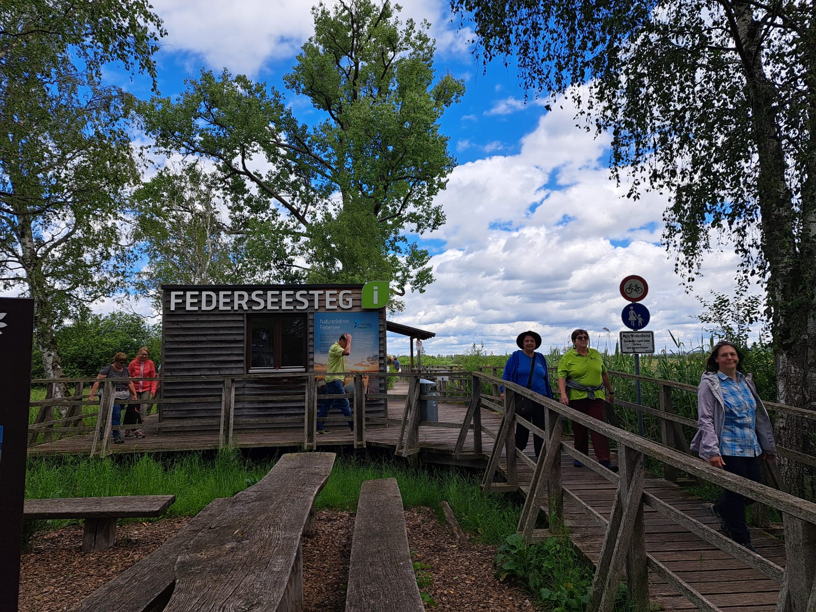 Gestärkt und mit Sonnenkraft aufgetankt konnte es losgehen zu unserer Wanderung vom Federsee bis nach Bad Schussenried. Leider konnten wir den Wackelpfad nicht austesten, da er wegen Hochwasser gesperrt war – wirklich schade!