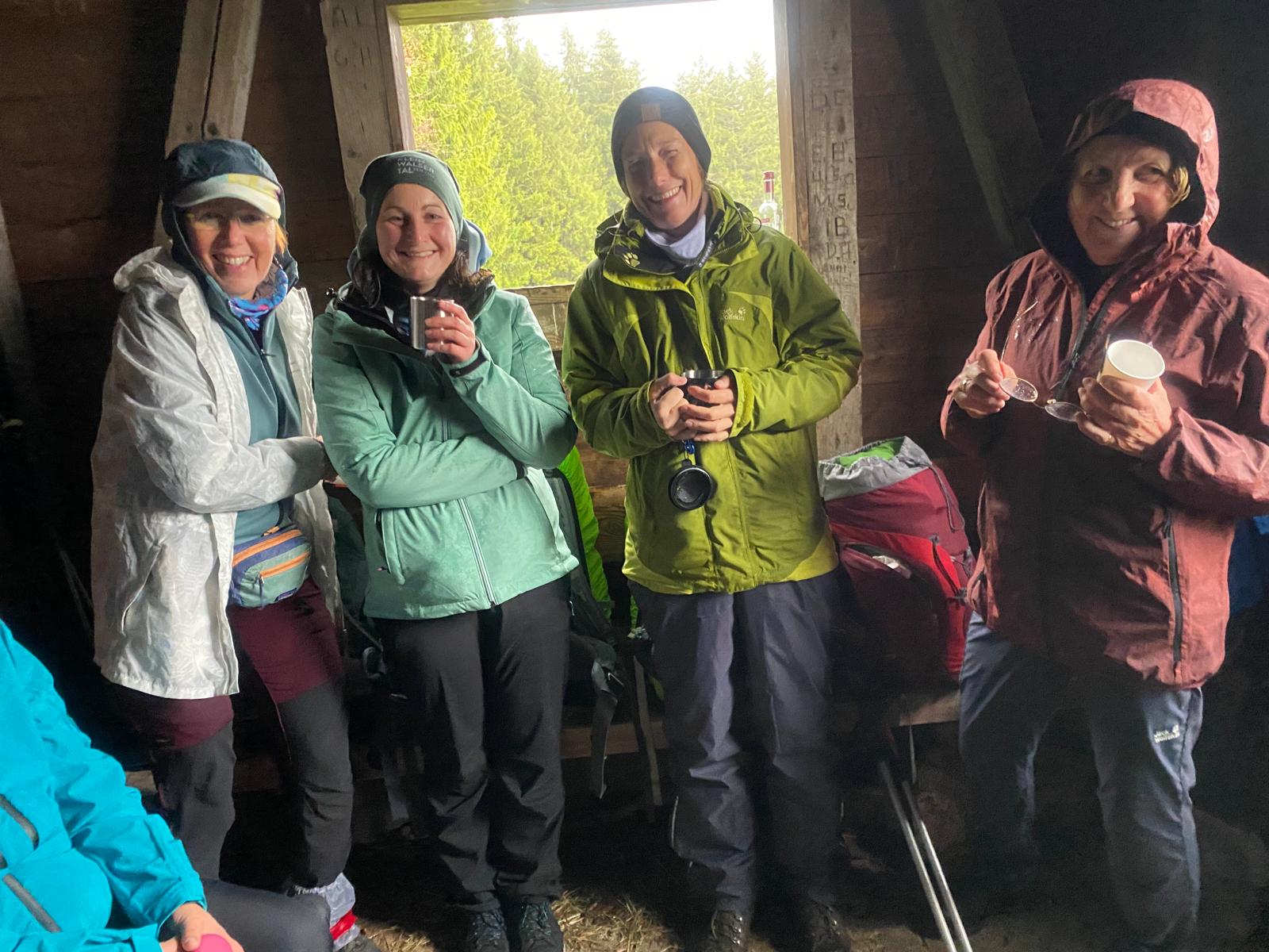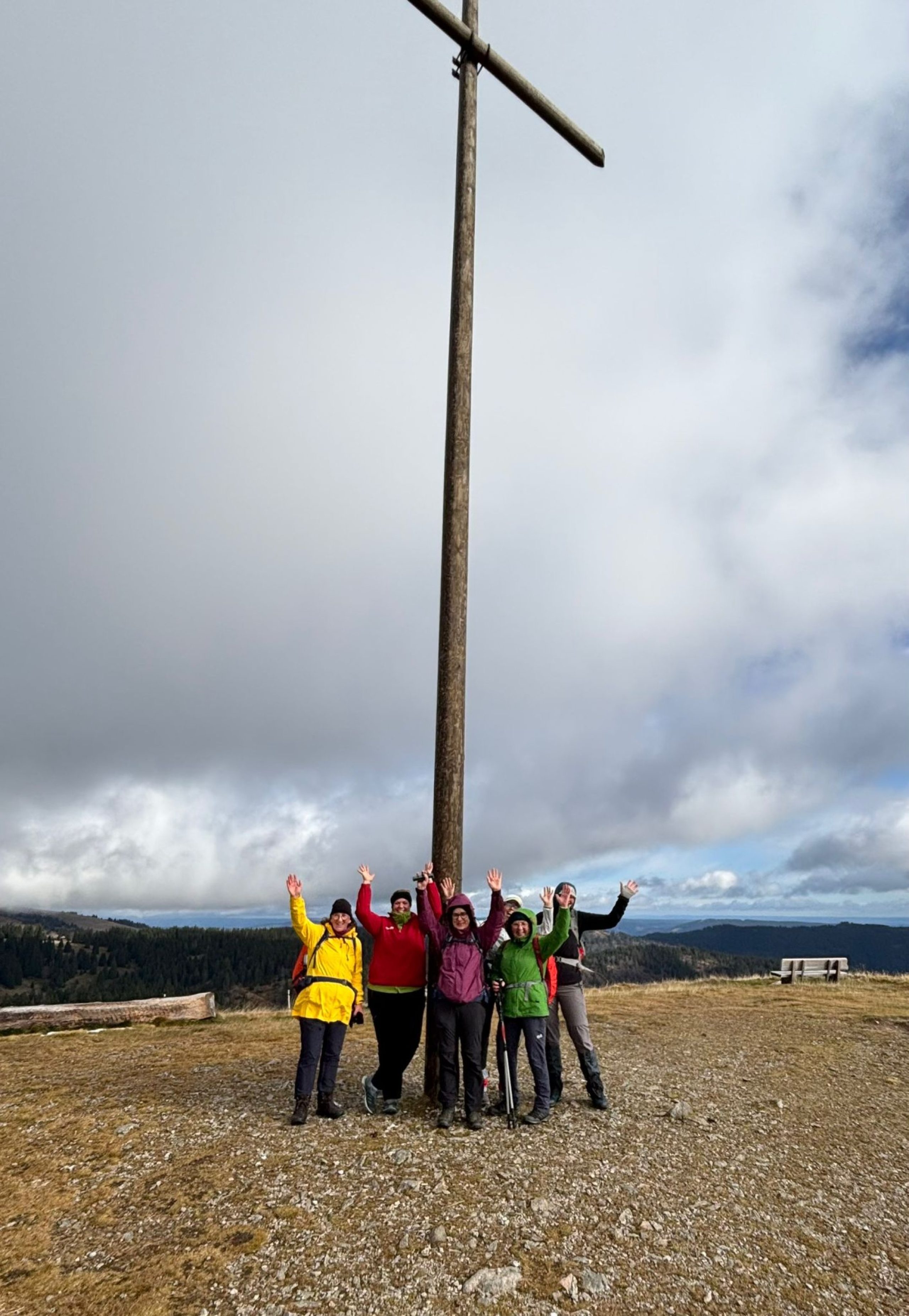 Nach einer Rast in der Menzenschwander Hütte am Feldberg wurden zum letzten Mal die Rucksäcke geschultert und bei gleich miesem Wetter wie beim Start kam die Gruppe wieder gut am Parkplatz an.
