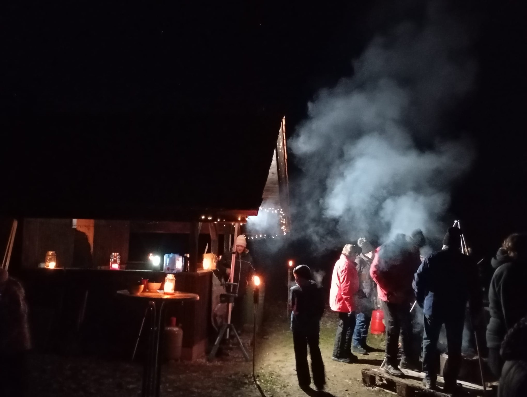 Dort warteten schon warme Feuertonnen, Punsch, Glühwein und ein herzhafter Gulasch zum Verzehr.