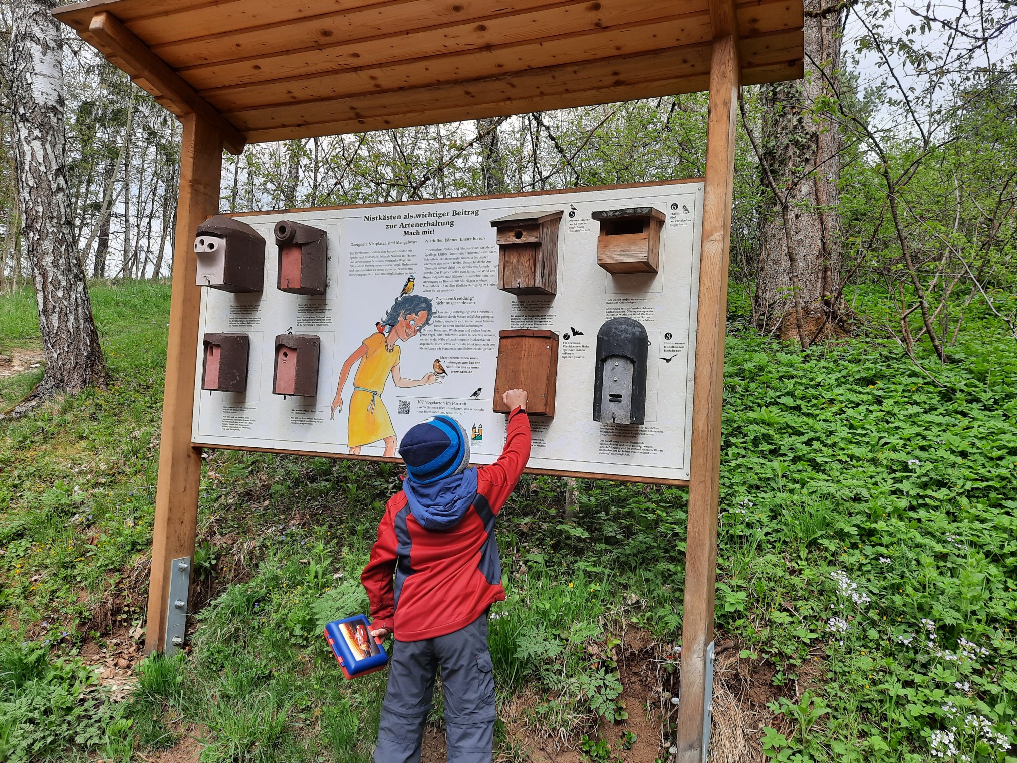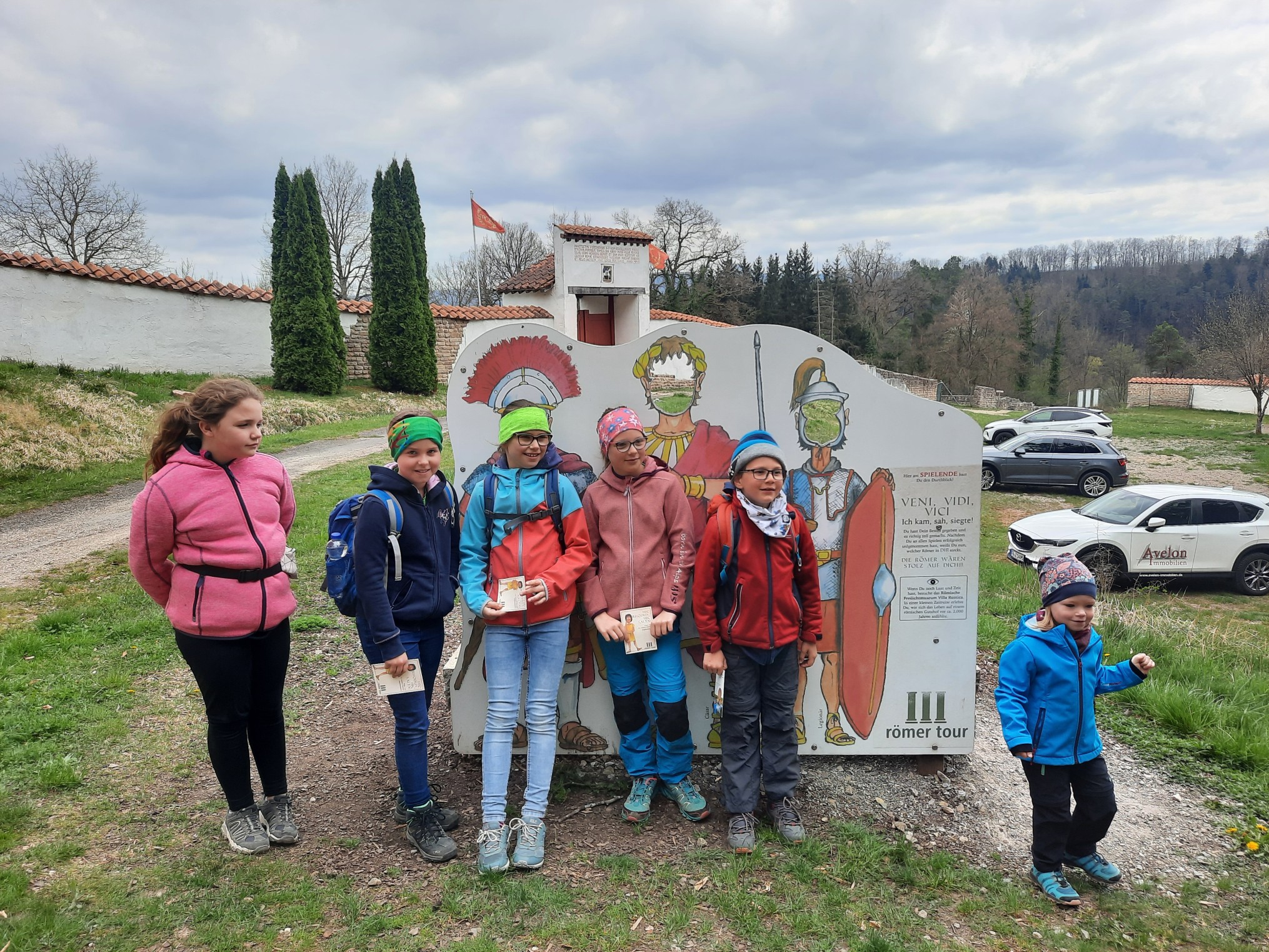Am Ostersamstag trafen wir uns um halb zwei an der Festhalle in Stetten. 6 Familien fanden sich ein und gemeinsam starten wir mit unseren Privatautos nach Hechingen-Stein. Dort parkten wir am Römischen Freilichtmuseum und marschierten dann los, um den Erlebnisweg mit seinen 8 Stationen zu erkunden.
