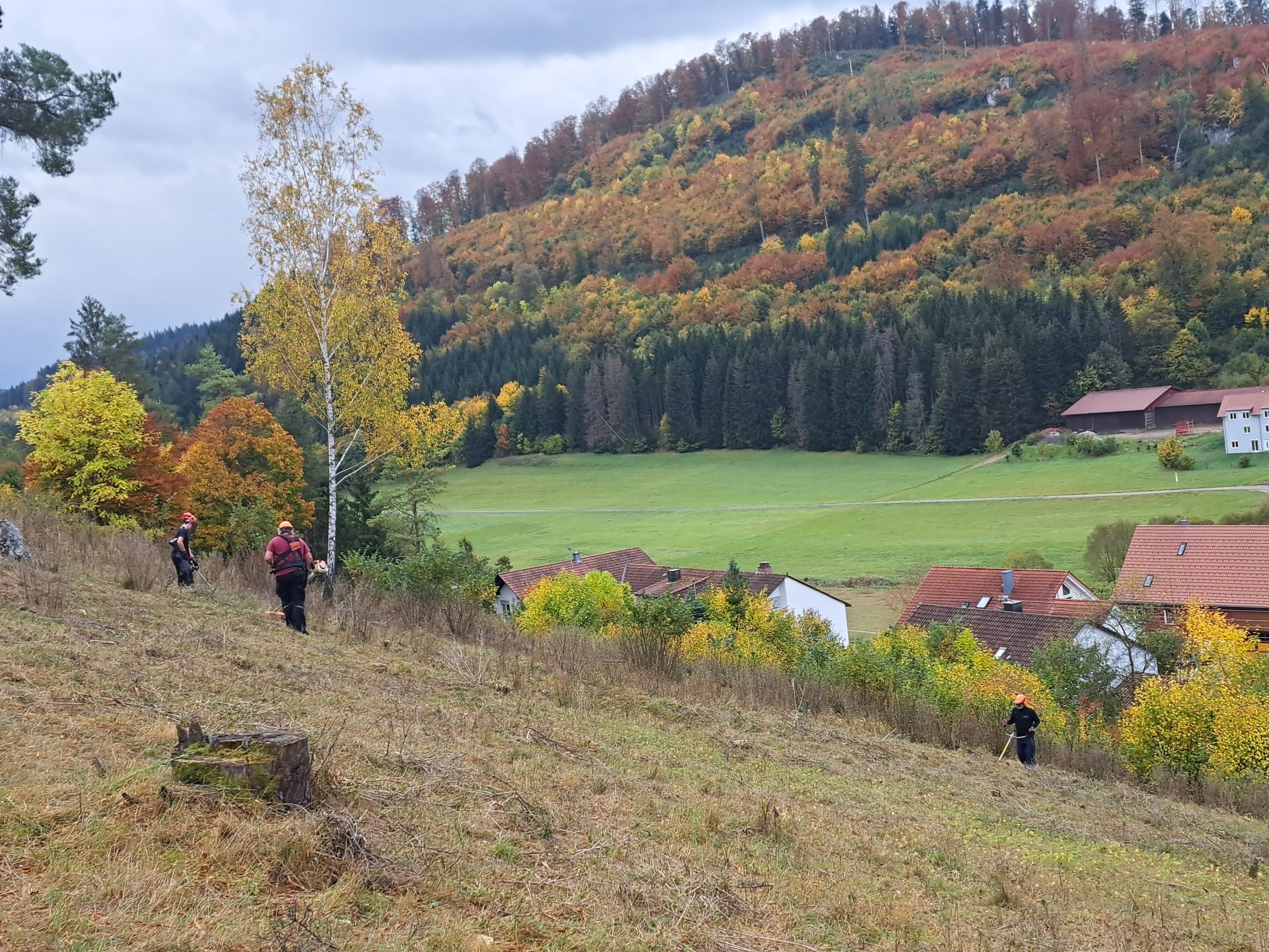 Mit einem Team von ca. 10 engagierten Helfern, die mit Freischneidern und Motorsägen ausgestattet sind, nimmt sich der Albverein Stetten der Pflege der Fohlenweide an, um den Lebensraum von Tieren und Pflanzen zu erhalten.