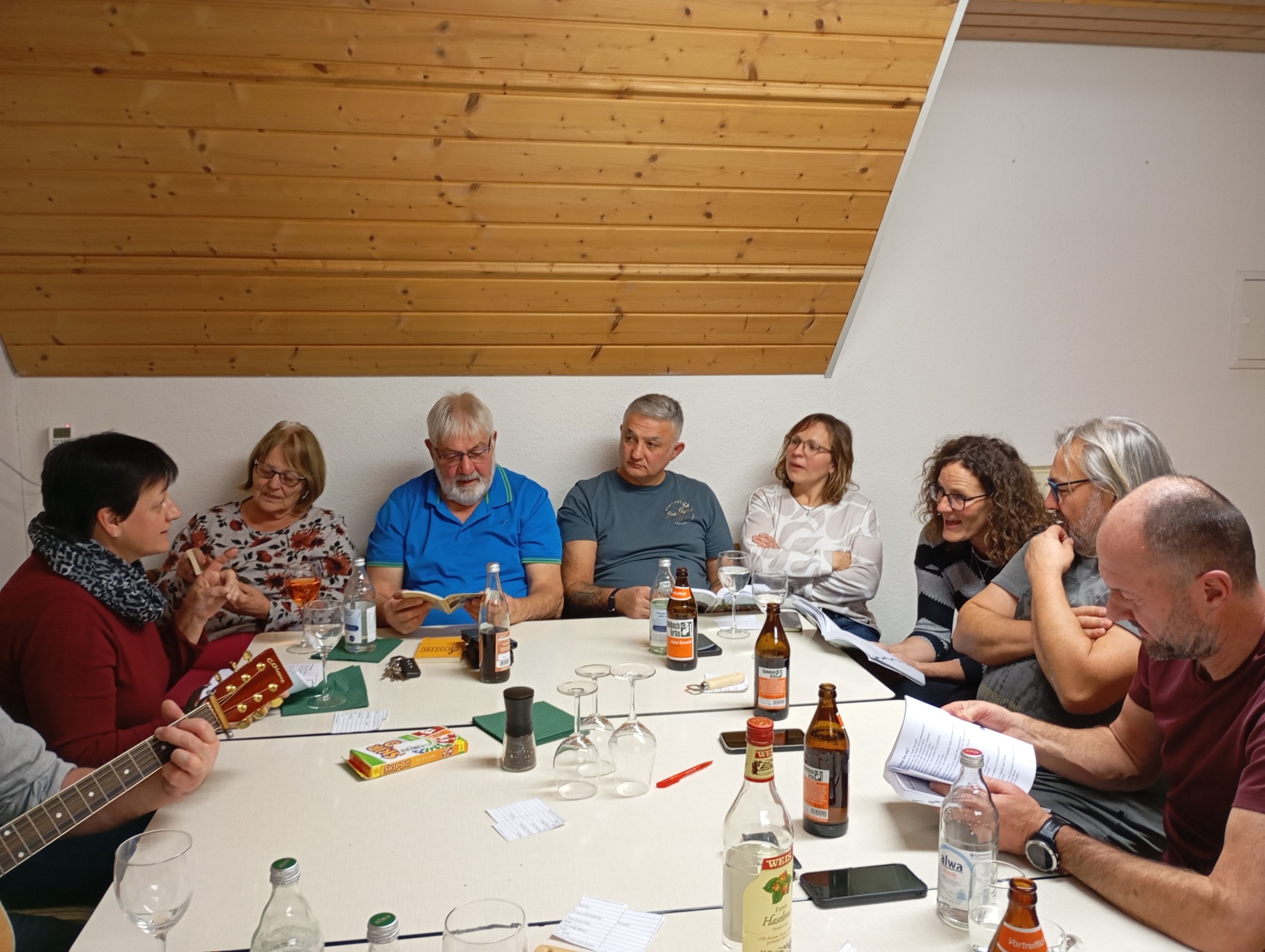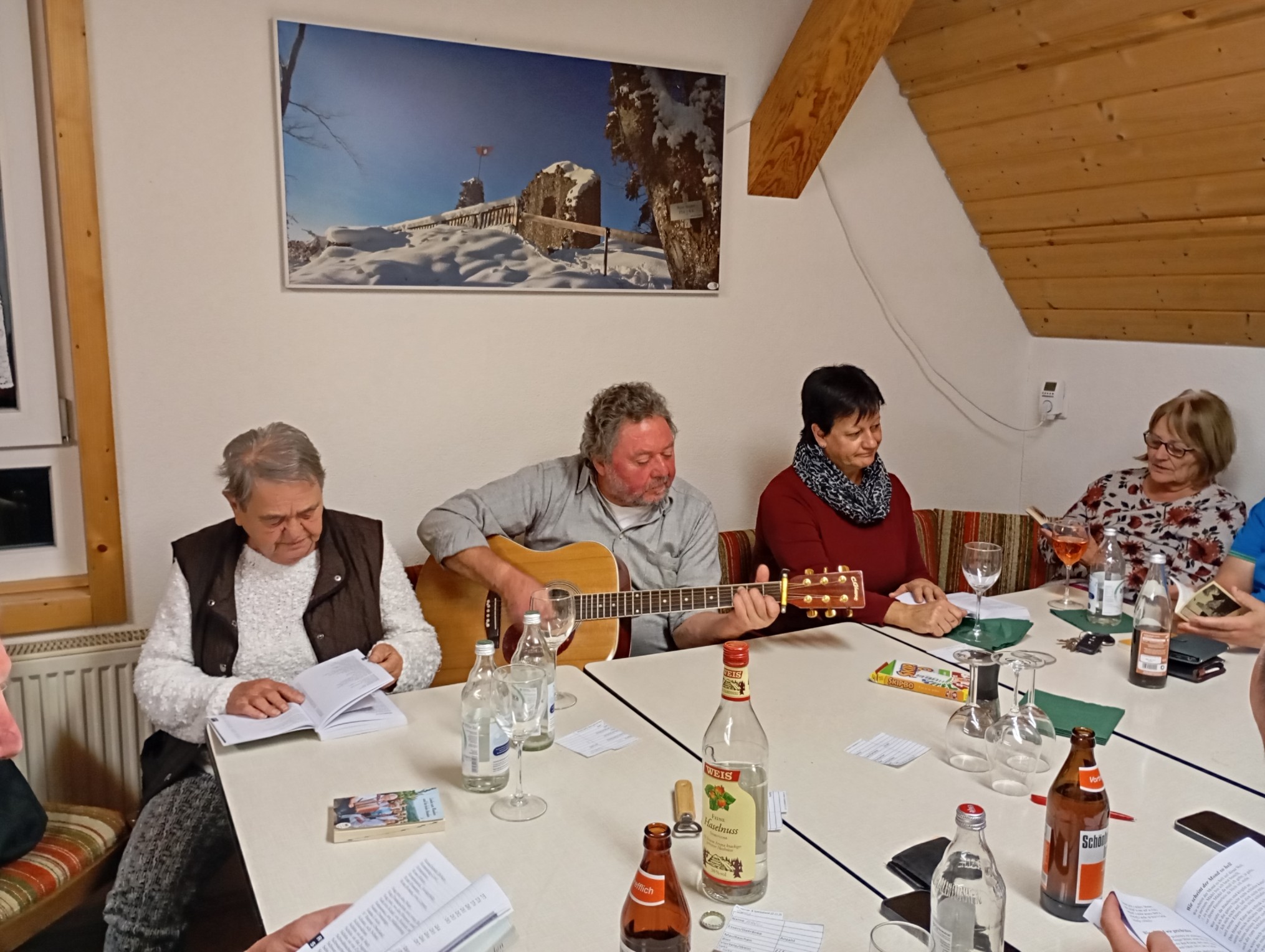 Danach wurden die Liederbücher ausgeteilt und schon konnten wir uns vor Liedvorschlägen nicht mehr retten. Willi packte die Gitarre aus und los gings!